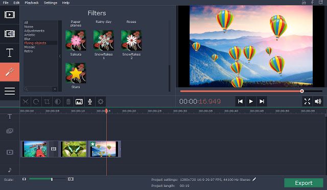 - En Movavi Video Suite encontrará más de 80 efectos visuales diferentes, que incluyen Película retra, Camara lenta, Objetos voladores